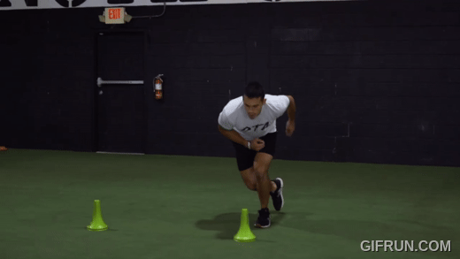 Set up four cones around an athlete. The coach calls out a cone, and the athlete has to react, sprint to it, touch it, and return to the middle.
