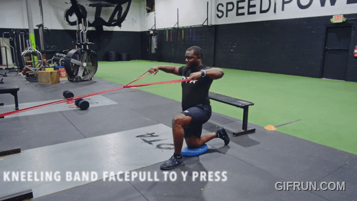 7. Band Facepull External Rotation to Press to Eccentric Y Fly